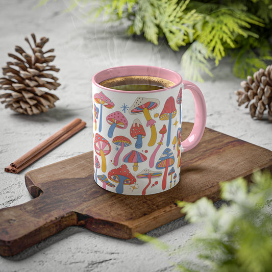 Foragers Friend Mushroom Mug | Mushroom Ceramic Mug | Fungi Grower & Forager Gift | Mushroom Lover | Hippy Trippy Pink